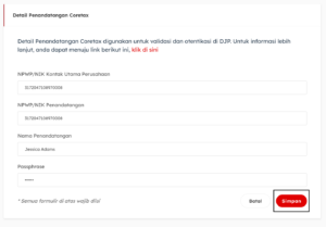 - Pastikan seluruh data sesuai dengan informasi yang terdaftar di DJP lalu klik Simpan