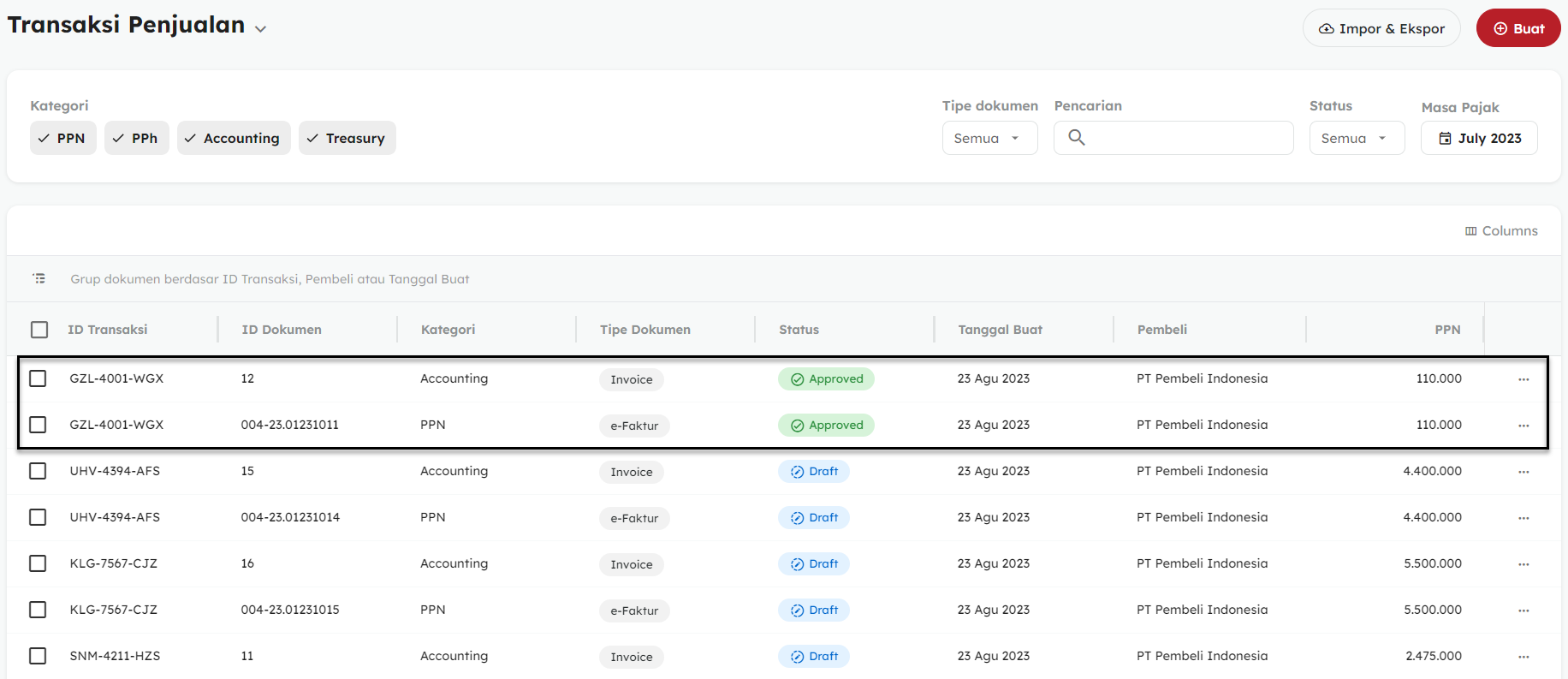 - Pilih menu Transaksi Penjualan dan/atau Transaksi Pembelian