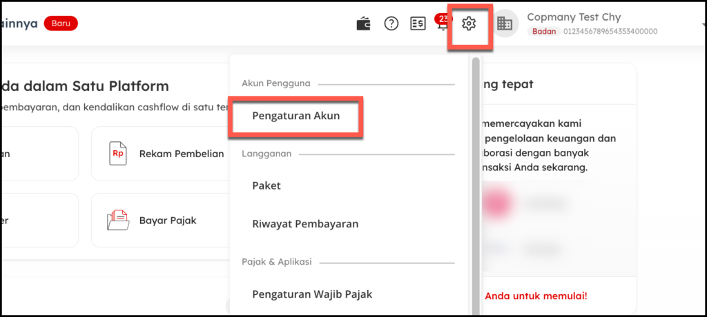 Klik menu Pengaturan dengan ikon Gear di dashboard Anda.