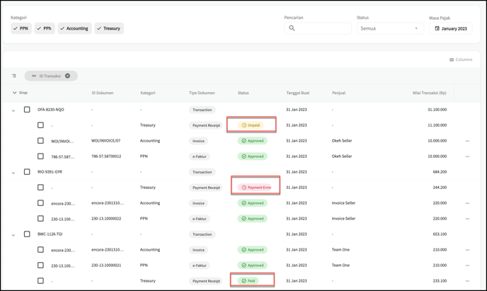 Anda dapat melihat detail dari status tersebut dengan mengklik kolom Keterangan pada invoice terkait.