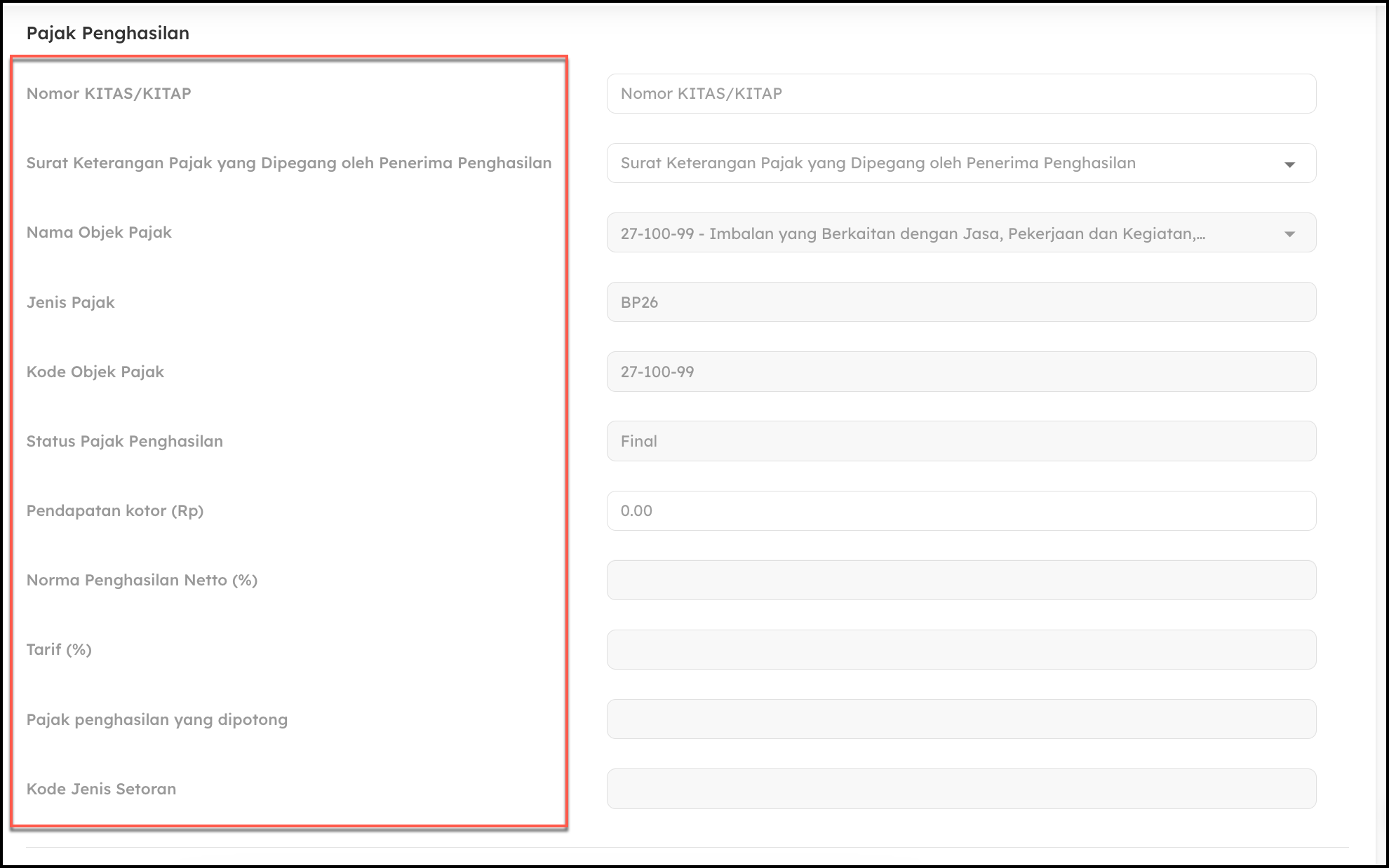 - Isi Detail Pajak Penghasilan. Masukkan informasi seperti: Nomor KITAS/KITAP, Pilih fasilitas yang digunakan sesuai kondisi wajib pajak, Nama Objek Pajak (penerima penghasilan), Jumlah penghasilan bruto yang akan dikenakan pajak.