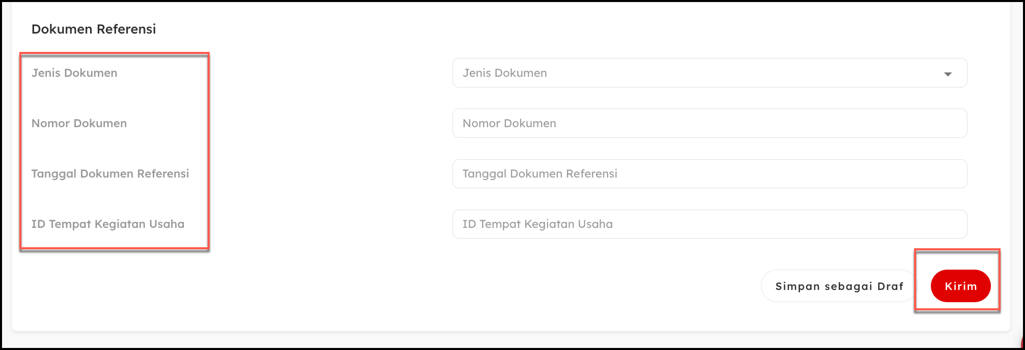 - Tambahkan Dokumen Referensi. Jika ada dokumen referensi yang diperlukan, unggah dokumen tersebut, lalu klik Kirim untuk menyimpan data.