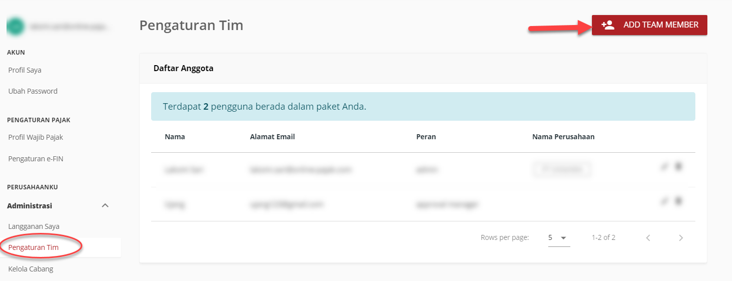 – Peran dalam Tim seperti Finance, Tax Accountant, Approval Manager, Member, Admin atau HR