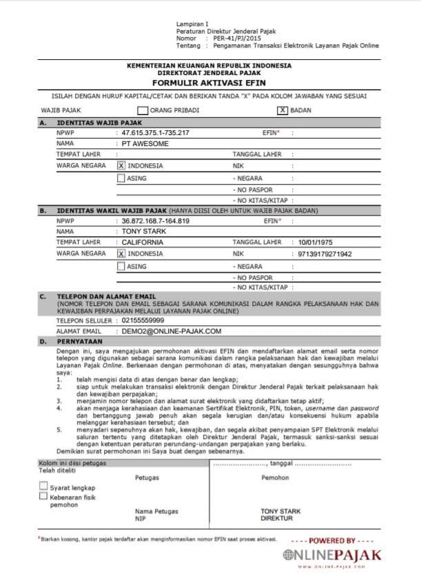 - Petunjuk Pengisian Formulir EFIN Pajak Online di OnlinePajak,